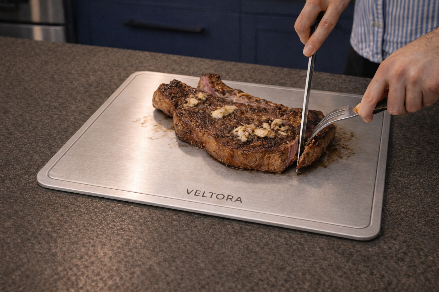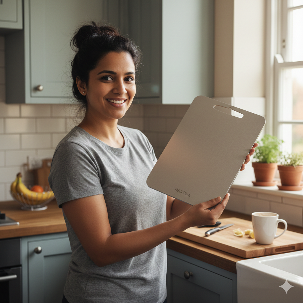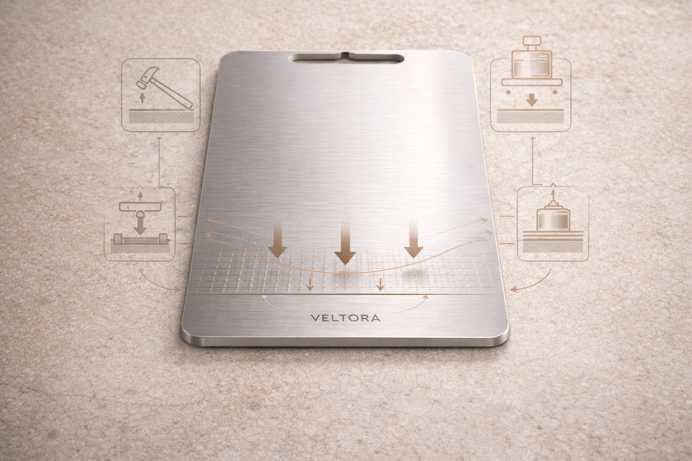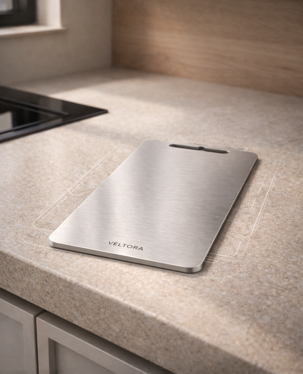 Là où le bois et le plastique vieillissent, le titane reste intact. VELTORA offre une surface stable, propre et durable, pensée pour une cuisine moderne et exigeante.
